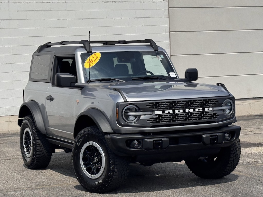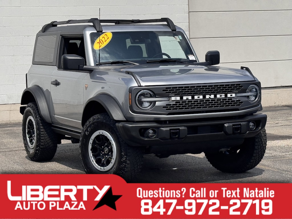 Iconic Silver Metallic 2022 Ford Bronco Badlands 4WD 10-Speed Automatic 2.7L EcoBoost V6 1 OWNER CERTIFED CARFAX**, **LEATHER HEATED SEATS**, **ALLOY WHEELS**, **BACK UP CAMERA**, **CLEAN CERTIFIED CARFAX**, **PREMIUM SOUND SYSTEM**, **NON SMOKER**, **LOCAL TRADE IN**, **BLUE TOOTH/ HANDS FREE**, **I POD CONNECT**, 2.7L EcoBoost V6, 4WD, 4.7 Axle Ratio, AM/FM radio: SiriusXM with 360L, Convertible HardTop, SYNC 4.