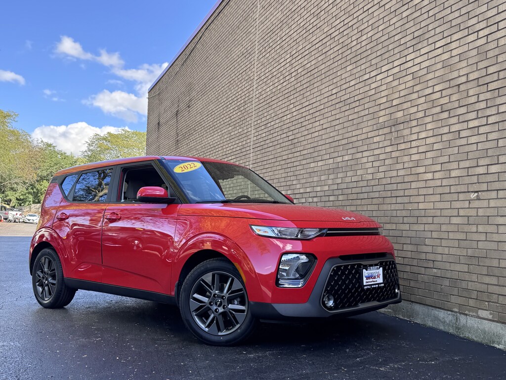 Inferno Red 2022 Kia Soul EX FWD CVT 2.0L I4 DOHC 1 OWNER CERTIFED CARFAX**, **ALLOY WHEELS**, **BACK UP CAMERA**, **NAVIGATION **, **PREMIUM SOUND SYSTEM**, **NON SMOKER**, **LOCAL TRADE IN**, **SUNROOF/MOONROOF**, **BLUE TOOTH/ HANDS FREE**, **I POD CONNECT**, Apple CarPlay & Android Auto, Automatic temperature control, Emergency communication system: UVO Link, Front dual zone A/C, Front fog lights, Power driver seat, Radio: AM/FM/MP3 Audio System.