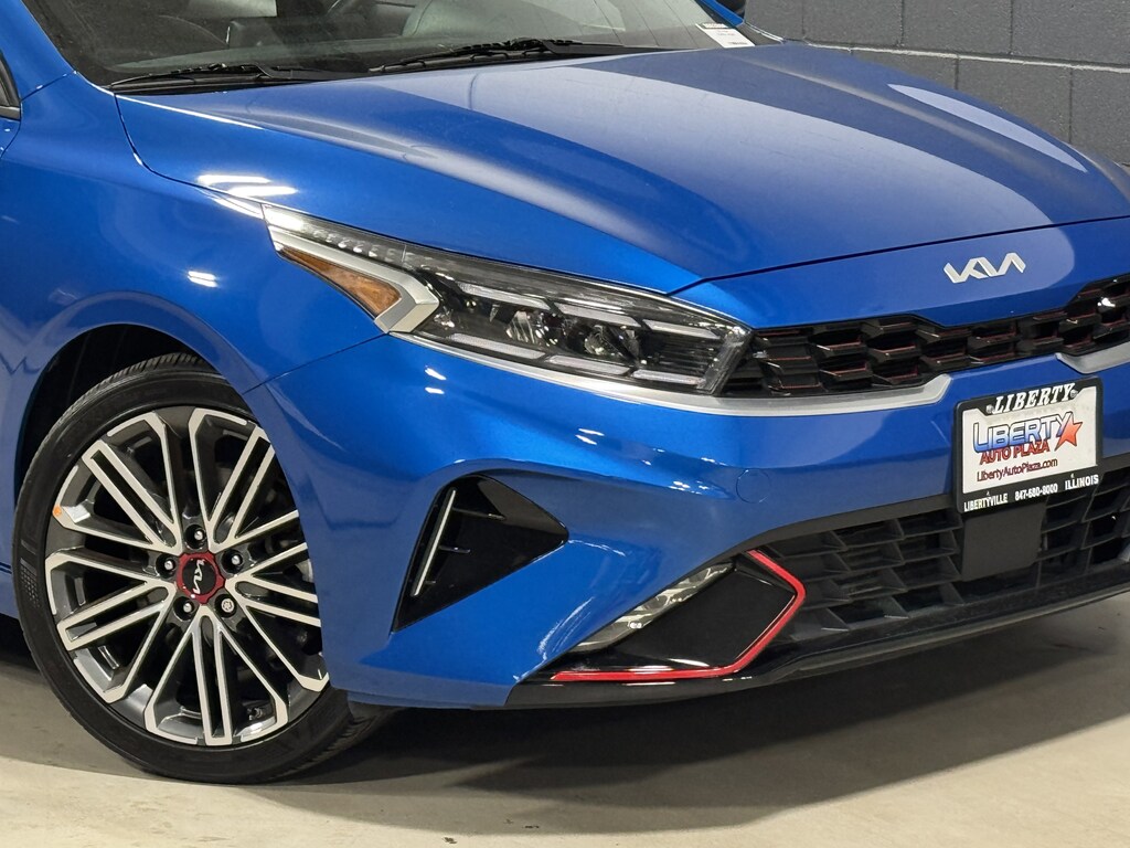 Sporty Blue 2023 Kia Forte GT FWD 7-Speed Automatic 1.6L I4 Turbo 1 OWNER CERTIFED CARFAX**, **LEATHER HEATED SEATS**, **ALLOY WHEELS**, **BACK UP CAMERA**, **NAVIGATION **, **PREMIUM SOUND SYSTEM**, **NON SMOKER**, **LOCAL TRADE IN**, **BLUE TOOTH/ HANDS FREE**, **I POD CONNECT**, HEATED AND COOLED FRONT SEATS, 10-Way Power Driver's Seat, 18" x 7.5J Alloy Wheels, Apple CarPlay & Android Auto, Automatic temperature control, Front dual zone A/C, GT2 Package, Heated & Ventilated Front Seats, Leather steering wheel, LED Interior Lighting, Parking Distance Warning-Reverse, Power Sunroof, Radio: 10.25" Display Audio, Radio: harman kardon Premium Audio, Sport steering wheel, SynTex Seat Trim.