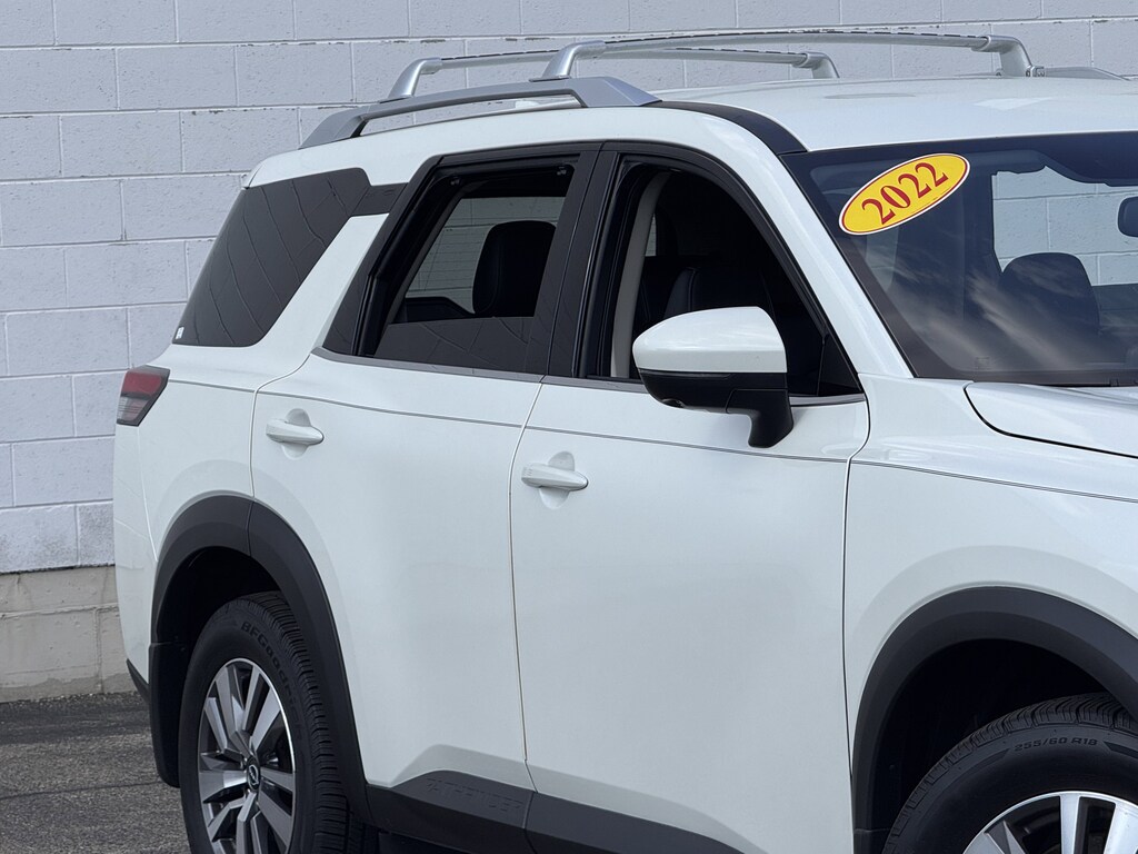 Pearl White Tricoat 2022 Nissan Pathfinder SL 4WD 9-Speed Automatic V6 1 OWNER CERTIFED CARFAX**, **LEATHER HEATED SEATS**, **ALLOY WHEELS**, **BACK UP CAMERA**, **NAVIGATION **, **3RD ROW SEATING**, **PREMIUM SOUND SYSTEM**, **LOCAL TRADE IN**, **BLUE TOOTH/ HANDS FREE**, **I POD CONNECT**, 4WD, Auto-dimming Rear-View mirror, Automatic temperature control, Black Badging, Black Grille, Emergency communication system: NissanConnect Services, Front dual zone A/C, NissanConnect w/Navigation & Services, Power driver seat, Power Liftgate, Power passenger seat, Rear air conditioning, SL Black Package.