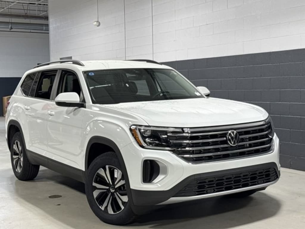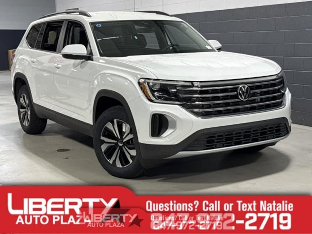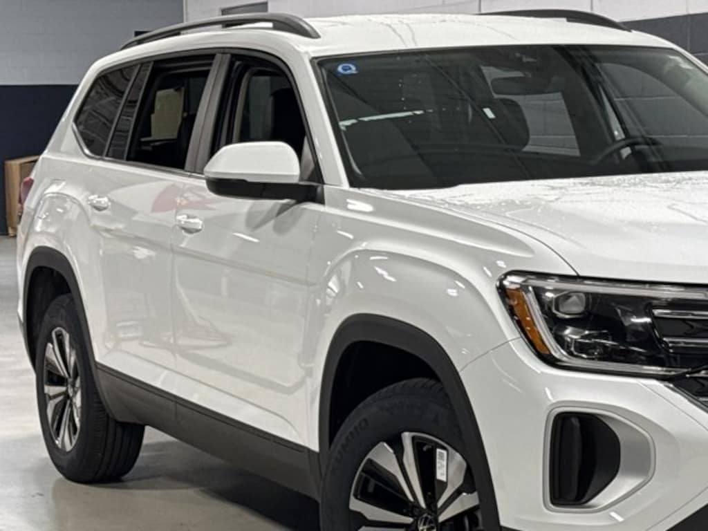 Pure White 2025 Volkswagen Atlas 2.0T SE AWD 8-Speed Automatic with Tiptronic 2.0L TSI 1 OWNER CERTIFED CARFAX**, **LEATHER HEATED SEATS**, **ALLOY WHEELS**, **BACK UP CAMERA**, **CLEAN CERTIFIED CARFAX**, **ALL WHEEL DRIVE**, **3RD ROW SEATING**, **PREMIUM SOUND SYSTEM**, **NON SMOKER**, **LOCAL TRADE IN**, **BLUE TOOTH/ HANDS FREE**, **I POD CONNECT**, HEATED AND COOLED FRONT SEATS, AM/FM radio: SiriusXM with 360L, Auto-dimming Rear-View mirror, Automatic temperature control, Emergency communication system: VW Car-Net Safe & Secure 5-year, Front dual zone A/C, Heated steering wheel, Power driver seat, Radio: MIB3 Composition Media, Rear air conditioning.